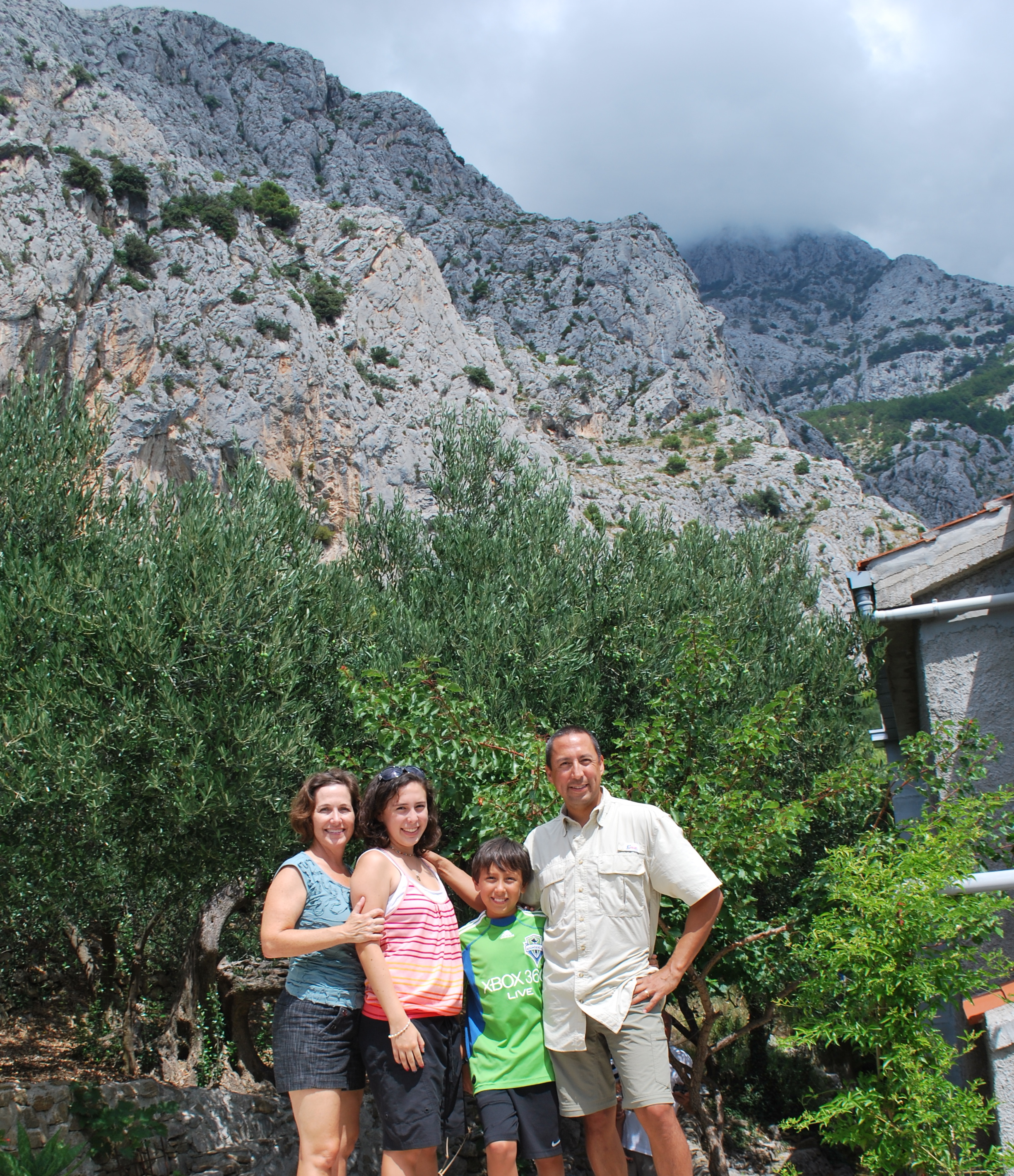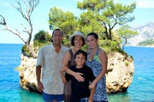 Me, Mom, Toni and Gorinka on one of the decks in the mountain house with the Adriatic Sea and the Brac and Hvar Islands in the background.