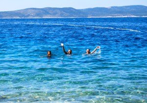 While in Brela Toni told us how she went there growing up and how she would jump off the rocks. Well one day she took us to the rocks. Let’s just say that the rocks were much higher than we had anticipated. Toni went first and did a ‘shallow’ dive, HEADFIRST! Very nerve-racking. She is so much fun and she’s crazy brave too. Then it was my turn so I climbed up but it’s much scarier on top than on the bottom. So I waited as some other kids came on a paddle boat, they got very close and if I had jumped I would have landed on them. So this one guy went and then Toni told them to hold off cause my dad and I still had to go. So Dad went first (his friend Dr. Rick gave him a 3 for technique but a 9 for facial expression), and then me, my stomach raced to my mouth the minute I jumped! It was very fun to do it but I’m not going to do that again (maybe).