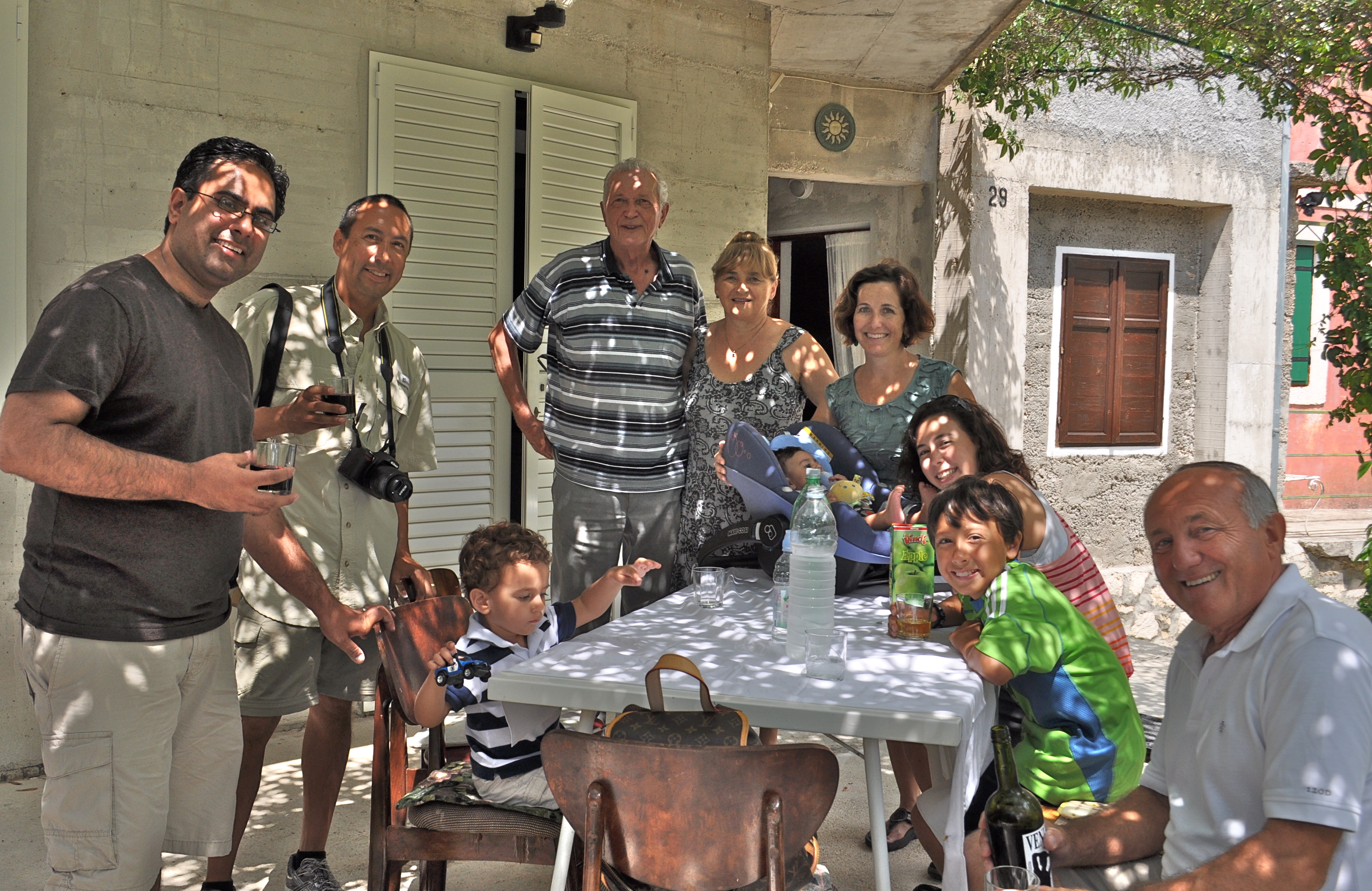 The mountain house had a great deck with grape vines for shade. Bronco (the older gentleman in the back with Gorinka) was our host.