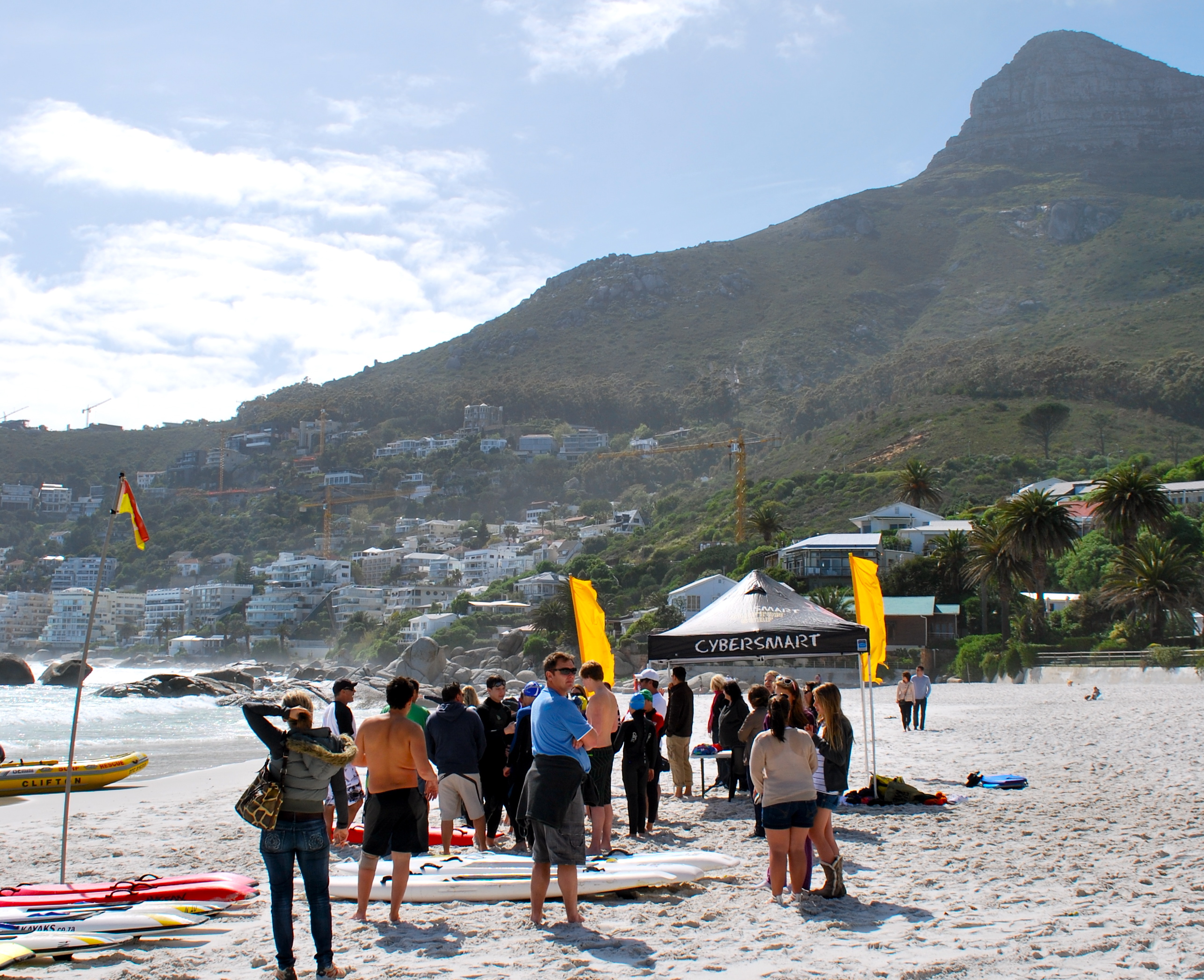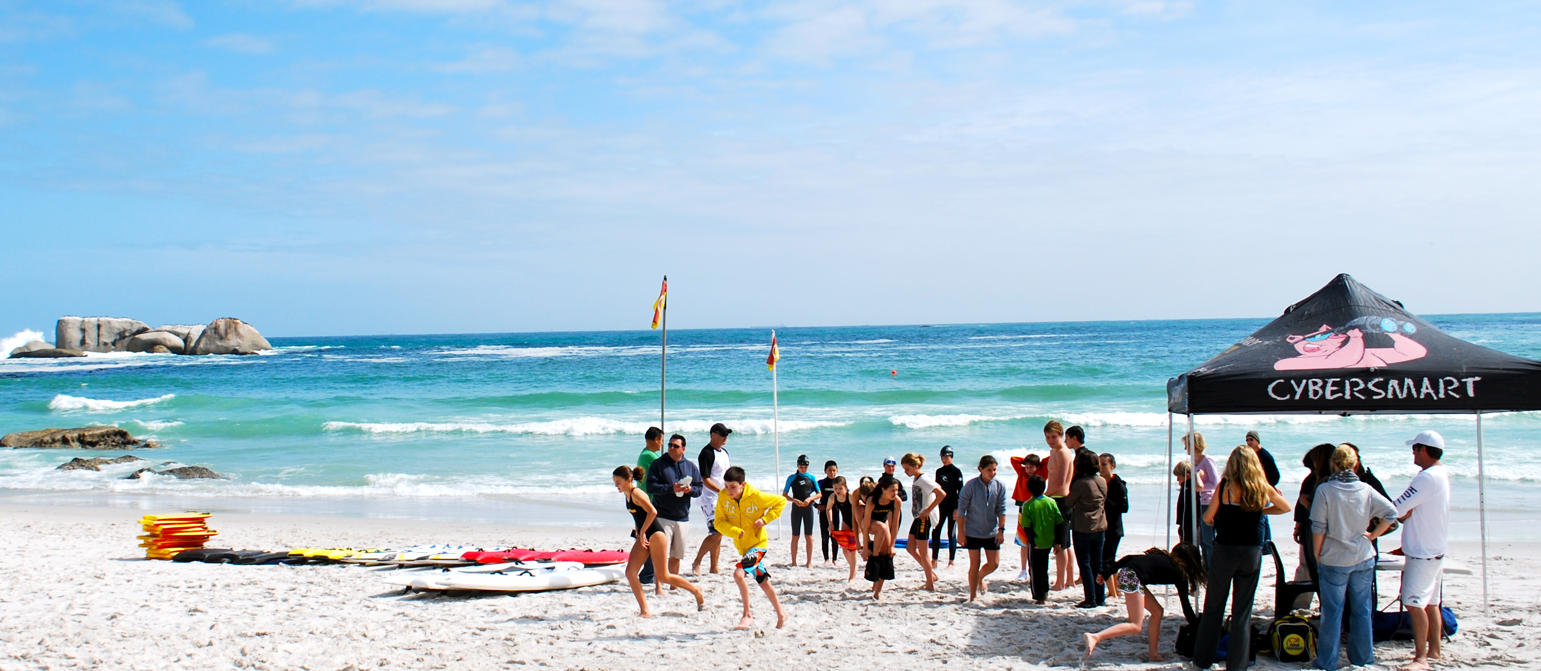 Since we swim with the team we were invited to what they call a “Nipper Challenge”. It is where all the kids (the “nippers” that are in lifeguard training) on the swim team go to the beach for a fun competition. First you run in the sand, then there is a course in the ocean (that is way too cold) that you complete 3 times; once swimming, then you go grab a boogie board and do the course with that and after that you use a Malibu board. The kids swam in the water with wet suites, they had them just in case and they needed them. We didn’t have any, hoping the water would be warm enough but it wasn’t so we just watched, I did do the sand run. They served chicken burgers, which were really good. It was a fun event at the beach! We also saw a beached whale that was dead 😦 and really decomposed, it was really sad. Other than that it was an awesome day!