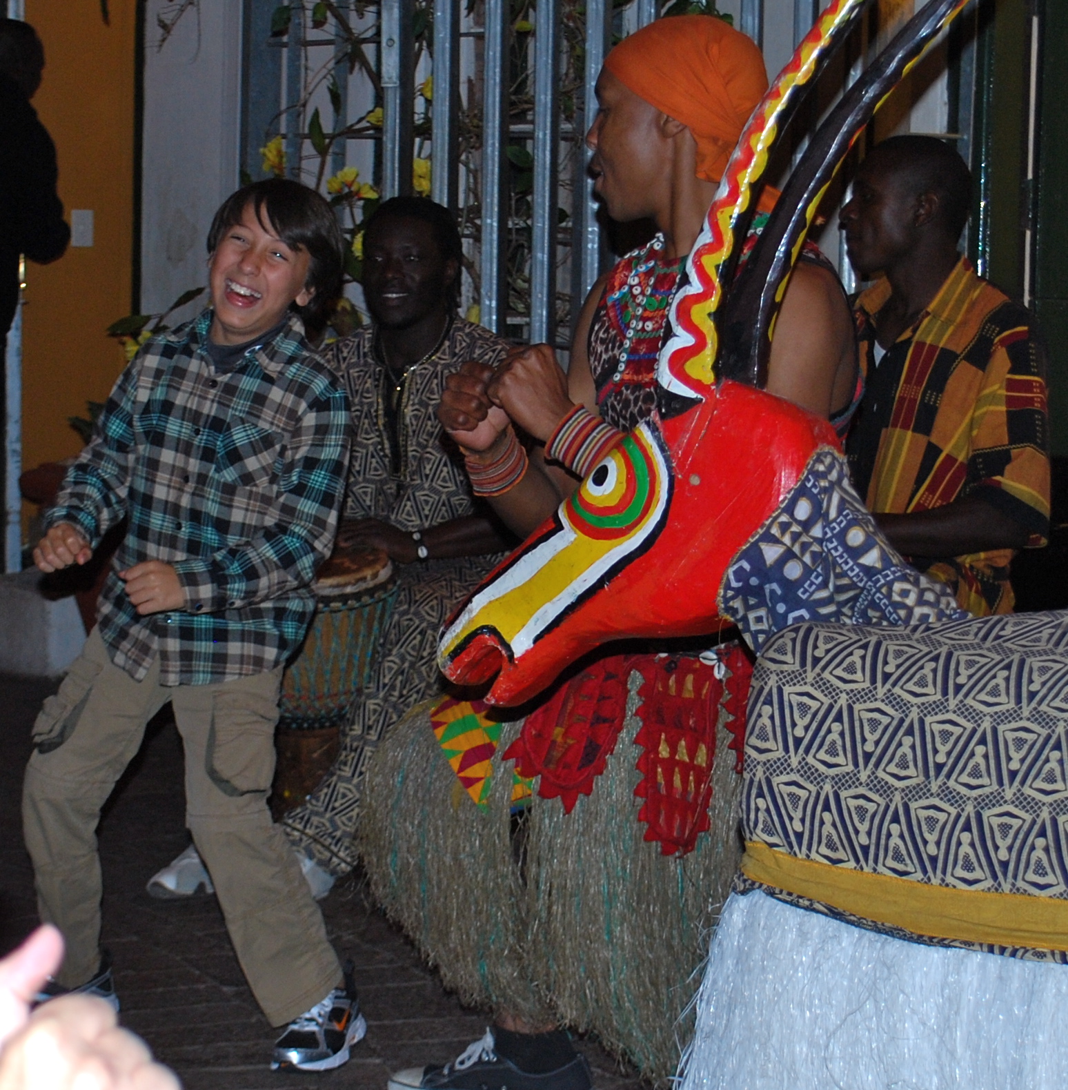 We haven’t seen many of the sites because we have so much time here and have been settling in, but last night we did go to the Gold Museum for dinner. Before they gave us dinner we had an awesome drum class. We all got a drum and it got really loud. We did beats it was awesome! We didn’t have to order food they just gave us food and told us what type of African food it was. There were 5 courses, soup, stew, appetizer, main course, and dessert. While we were eating there were 3 puppet shows, dancers and a singer. The puppets were at least 8 feet tall with a person inside of it. I was lucky enough to get to do a traditional dance with one of the guys that wasn’t a puppet. It was a great night!