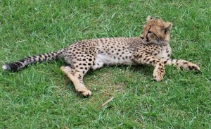 This 6-year-old cheetah was really relaxing when we pet him but later we saw him staring at the cubs that were in a different area. When the trainer tried to grab his leash the cheetah growled and snapped at him, it was really scary. The trainer backed away and said that the only thing this cheetah wants to do right now is kill those cubs. He wasn't used to them being around yet.